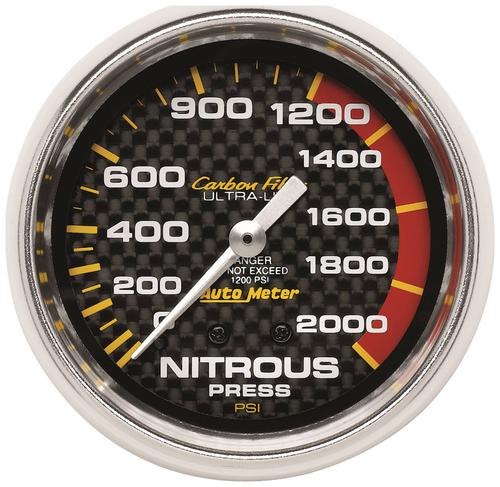 Auto Meter Carbon Fiber 0 To 2000 psi 2-5/8 Inch NO2 Pressure Gauge - 4828