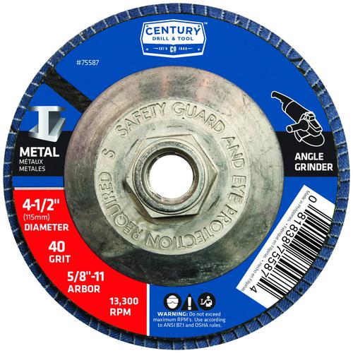 Century Drill & Tool 4-1/2 Inch Diameter 40 Grit Flap Disc - 75587