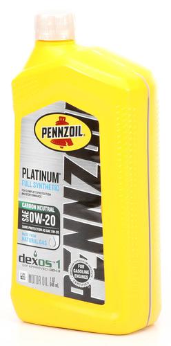 Pennzoil Platinum Full Synthetic Motor Oil 0W-20 1 Quart - PLAT0-20