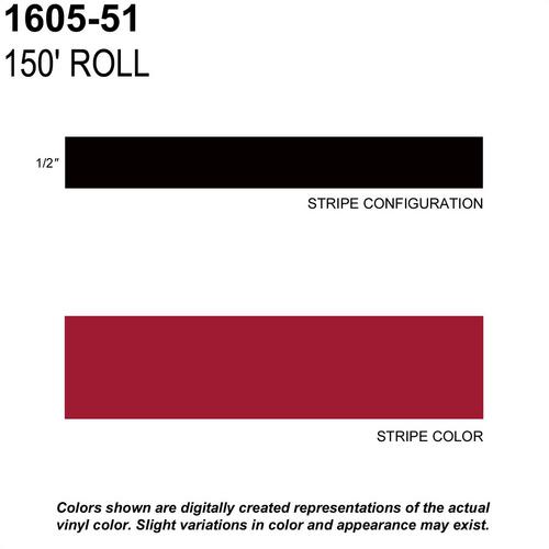 Trimbrite Prostripe 1/2 Inch x 150 Foot Dark Red Striping Tape - 1605-51