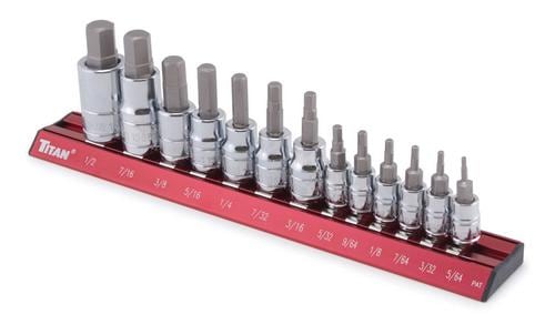 Titan 13 Piece 1/4, 3/8, 1/2 Inch Drive Hex SAE Socket Set - 16123