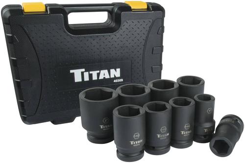 Titan 9 Piece 1 Inch Drive Deep 6 Point SAE Socket Set - 40309