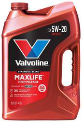 Compare Maximum number of 4 items selected Valvoline MaxLife High Mileage Synthetic Blend 5W-20 Motor Oil 5 Quart - HIMI5-20-5QT Part #: HIMI5-20-5QT Line: VAL Valvoline MaxLife High Mileage Synthetic Blend 5W-20 Motor Oil 5 Quart Manufacturer's Defect Warranty High Mileage: Yes Viscosity Index: 148 Fuel Type: Gasoline Container Size: 5 Quart Oil Composition: Synthetic Blend Viscosity Grade/Weight: 5W-20 Show More Show Less