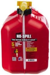 Compare Maximum number of 4 items selected No Spill 5 Gallon Gasoline Jug - 1460 Part #: 1460 Line: NSP No Spill 5 Gallon Gasoline Jug 3 Year Limited Warranty Color: Red Material: Plastic Shape: Rectangle Volume: 5 Gallon Length (in): 15 Inch Length (mm): 404mm Fuel Type: Gasoline Show More Show Less