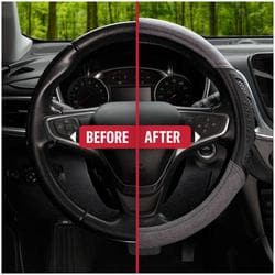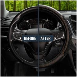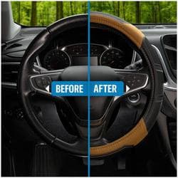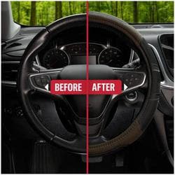 Compare Maximum number of 4 items selected Custom Accessories Steering Wheel Cover Black, Gray - 38667P Part #: 38667P Line: CA Custom Accessories Steering Wheel Cover Black, Gray 90 Day Limited Warranty Color: Black, Gray Diameter (in): 14-1/2 To 15-1/2 Inch Diameter (mm): 368mm To 394mm Material: Synthetic Leather Design: Sport Attachment Method: Slip-On Show More Show Less