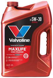 Compare Maximum number of 4 items selected Valvoline MaxLife High Mileage Synthetic Blend 5W-30 Motor Oil 1 Quart - MAXLIFE5-30 Part #: MAXLIFE5-30 Line: VAL Valvoline MaxLife High Mileage Synthetic Blend 5W-30 Motor Oil 1 Quart Manufacturer's Defect Warranty High Mileage: Yes Viscosity Index: 162 Fuel Type: Gasoline Racing: No Container Size: 1 Quart Oil Composition: Synthetic Blend Viscosity Grade/Weight: 5W-30 Show More Show Less