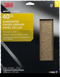 Compare Maximum number of 4 items selected 3M 40 Grit Sandpaper Sheet - 32118 Part #: 32118 Line: MMM 3M 40 Grit Sandpaper Sheet 1 Year Limited Warranty Color: Brown Grit: 40 Grit Material: Paper Quantity: 100 Type: Sheet Dimensions (in): 9 X 11 Inch Mineral Type: Aluminum Oxide Sanding Surface: Clearcoat, Fiberglass, Filler, Glass, HSE Plastics, Metal, Paint Sanding Method: Hand, Machine Wet Or Dry: Dry Show More Show Less