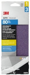 Compare Maximum number of 4 items selected 3M 80 Grit Sandpaper - 3076 Part #: 3076 Line: MMM 3M 80 Grit Sandpaper Manufacturer's Defect Warranty Color: Purple Grit: 80 Grit Material: Paper Quantity: 20 Type: Sheet Dimensions (in): 3-11/16 X 9 Inch Mineral Type: Precision Shaped Ceramic Sanding Surface: Clearcoat, Clear Plastic, Paint, Primer Sanding Method: Hand, Machine Wet Or Dry: Dry Show More Show Less