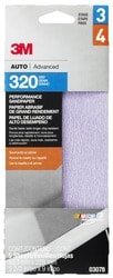 Compare Maximum number of 4 items selected 3M 320 Grit Sandpaper - 3078 Part #: 3078 Line: MMM 3M 320 Grit Sandpaper Manufacturer's Defect Warranty Color: Purple Grit: 320 Grit Material: Paper Quantity: 20 Type: Sheet Dimensions (in): 3-11/16 X 9 Inch Mineral Type: Aluminum Oxide Sanding Surface: Clearcoat, Fiberglass, Glass, HSE Plastics, Paint, Primer Sanding Method: Hand, Machine Wet Or Dry: Dry Show More Show Less