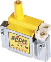 Compare Maximum number of 4 items selected ACCEL SuperCoil Ignition Coil - 11076 Part #: 11076 Line: ACC ACCEL SuperCoil Ignition Coil 1 Year Limited Warranty Color: Yellow Material: Polymer Connector Gender: Female Terminal Gender: Female Voltage (V): 12 Volt Number Of Terminals: 1 Show More Show Less