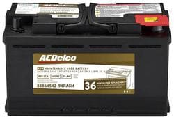 Compare Maximum number of 4 items selected ACDelco AGM Top Post Battery Group Size 94R 850 CCA 140 Minute RC - 94RAGM Part #: 94RAGM Line: ACD ACDelco AGM Top Post Battery Group Size 94R 850 CCA 140 Minute RC 3 Year Limited Warranty Battery Type: AGM Height (in): 7-1/2 Inch Height (mm): 190mm Length (in): 12-3/8 Inch Length (mm): 315mm Width (in): 6-7/8 Inch Width (mm): 175mm Terminal Type: Top Post Weight (Lbs): 51.6 Lbs. Voltage (V): 12 Volt Cold Cranking Amps (CCA): 850 CCA Cranking Amps (CA): 1020 CA Group Size (BCI): 94R Reserve Capacity (min): 140 Minute Amp Hour (Ah): 80 Ah Positive Terminal Location: Top Right Add Acid And Charge Required: No Show More Show Less