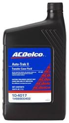 Compare Maximum number of 4 items selected ACDelco Auto Trak II Transfer Case Fluid 1 Liter - 10-4017 Part #: 10-4017 Line: ACD ACDelco Auto Trak II Transfer Case Fluid 1 Liter Manufacturer's Defect Warranty Container Size: 1 Liter