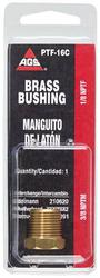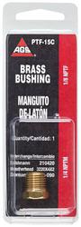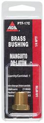 Compare Maximum number of 4 items selected American Grease Stick Brass Bushing - PTF17B Part #: PTF17B Line: AGS American Grease Stick Brass Bushing 1 Year Limited Warranty Material: Brass Thread Size: 1/4 Inch Temperature Range (Deg F): -65 To 250 Degree End 1 Thread Size: 3/8-18 Inch End 2 Thread Size: 1/4-18 Inch Temperature Range (Deg C): -54 To 121 Degree Maximum Working Pressure (psi): 900 psi Show More Show Less