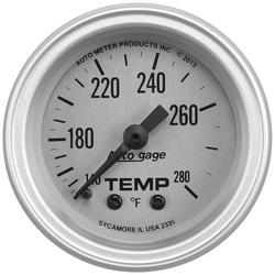 Compare Maximum number of 4 items selected Auto Meter 2-5/16 Inch Oil Temperature Gauge - 2335 Part #: 2335 Line: AUM Auto Meter 2-5/16 Inch Oil Temperature Gauge 1 Year Limited Warranty Type: Water Temperature Adapters Included: Yes Voltage (V): 8 To 18 Volt Gauge Size (in): 2-5/16 Inch Lens Color: Clear Anti-Glare Enclosure Included: No Range (Deg F): 140 To 280 Degree Bezel Color: Brushed Aluminum Face Color: Silver Digital Or Analog: Analog Bulb Type: Incandescent Number Color: Black Pointer Color: Black Illumination Color: White Sweep: Full Sweep Electrical Or Mechanical: Electrical Font Color: Black Bezel Style: Monster Gauge Size (mm): 52.4mm Show More Show Less