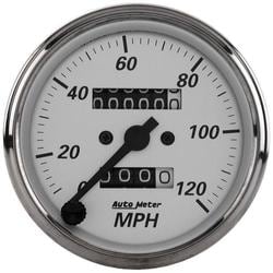 Compare Maximum number of 4 items selected Auto Meter American Platinum 3-1/8 Inch Speedometer Gauge - 1993 Part #: 1993 Line: AUM Auto Meter American Platinum 3-1/8 Inch Speedometer Gauge 1 Year Limited Warranty Bracket Included: Yes Gauge Size (in): 3-1/8 Inch Bezel Color: Silver Face Color: Silver Pointer Color: Black Sweep (Deg): 270 Degree Illumination Type: Incandescent Illumination Color: White Bezel Style: Street Rod Gauge Size (mm): 79mm Movement Type: Mechanical Bezel Diameter (in): 3-1/8 Inch Show More Show Less