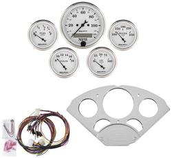 Compare Maximum number of 4 items selected Auto Meter Old Tyme Gauge Kit - 7033OTW Part #: 7033OTW Line: AUM Auto Meter Old Tyme Gauge Kit 1 Year Limited Warranty Lens Color: Clear Bezel Color: Chrome Face Color: White Bulb Type: Incandescent Gauge Type: Complete Instrument Kit Pointer Color: Black Illumination Color: White Bezel Style: Street Rod Movement Type: Electric Air-Core Show More Show Less