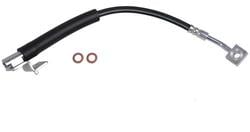 Compare Maximum number of 4 items selected BrakeBest 10-1/4 Inch Brake Hose - BH622479 Part #: BH622479 Line: BHH BrakeBest 10-1/4 Inch Brake Hose 1 Year Limited Warranty Color: Black, Silver Hardware Included: No Bracket Included: Yes Hose Material: EPDM Rubber Overall Length (in): 10-1/4 Inch Overall Length (mm): 261mm Gasket Or Seal Included: Yes End 1 Fitting Size (in): 3/8 Inch End 2 Fitting Size (in): 3/8 Inch End 2 Gender: Female End 1 Fitting Type: Banjo Show More Show Less