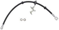 Compare Maximum number of 4 items selected BrakeBest 17-1/2 Inch Brake Hose - BH620621 Part #: BH620621 Line: BHH BrakeBest 17-1/2 Inch Brake Hose 1 Year Limited Warranty Color: Black, Silver Hardware Included: No Bracket Included: Yes Hose Material: EPDM Rubber Overall Length (in): 17-1/2 Inch Overall Length (mm): 444mm Gasket Or Seal Included: Yes End 1 Fitting Size (in): 3/8 Inch End 2 Fitting Size (in): 3/8 Inch End 2 Gender: Female End 1 Fitting Type: Banjo Show More Show Less