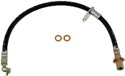 Compare Maximum number of 4 items selected BrakeBest 18-1/4 Inch Brake Hose - BH620584 Part #: BH620584 Line: BHH BrakeBest 18-1/4 Inch Brake Hose 1 Year Limited Warranty Color: Black, Silver Hardware Included: No Bracket Included: Yes Hose Material: EPDM Rubber Overall Length (in): 18-1/4 Inch Overall Length (mm): 464mm Gasket Or Seal Included: Yes End 1 Fitting Size (mm): M10 End 2 Gender: Female End 2 Fitting Size (mm): M10 End 1 Fitting Type: Banjo Show More Show Less