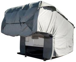Compare Maximum number of 4 items selected Budge Truck Camper Cover - RVRB70 Part #: RVRB70 Line: BI Budge Truck Camper Cover 1 Year Limited Warranty Color: Gray Water Resistant: Yes Dimensions (in): 209 X 113 X 96 Inch Attachment Method: Full Elastic Hem Fabric: Polypropylene Breathable Construction: Yes Show More Show Less