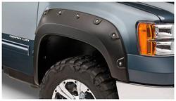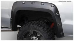 Compare Maximum number of 4 items selected Representative Image Bushwacker Boss Pocket Style Black Fender Flare Set - 71907-02 Part #: 71907-02 Line: BSW Bushwacker Boss Pocket Style Black Fender Flare Set Limited Lifetime Warranty Color: Black Finish: Matte Material: Plastic Style: Pocket Hardware Included: Yes Paintable: Yes Drilling Required: No Number Of Pieces: 4 Flare Height (in): 6-1/2 Inch Tire Coverage (in): 1/2 Inch Lighting Included: No Show More Show Less