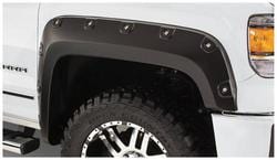 Compare Maximum number of 4 items selected Representative Image Bushwacker Boss Pocket Style Black Fender Flare Set - 40085-02 Part #: 40085-02 Line: BSW Bushwacker Boss Pocket Style Black Fender Flare Set Limited Lifetime Warranty Color: Black Finish: Matte Material: Plastic Style: Pocket Hardware Included: Yes Paintable: Yes Drilling Required: No Number Of Pieces: 2 Flare Height (in): 8 Inch Tire Coverage (in): 2 Inch Lighting Included: No Show More Show Less