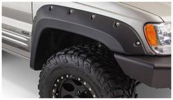 Compare Maximum number of 4 items selected Bushwacker Cut-Out Black Fender Flare Set - 10909-07 Part #: 10909-07 Line: BSW Bushwacker Cut-Out Black Fender Flare Set Limited Lifetime Warranty Color: Black Finish: Matte Material: Plastic Style: Pocket Hardware Included: Yes Paintable: Yes Drilling Required: Yes Number Of Pieces: 4 Flare Height (in): 4-1/4 Inch Tire Coverage (in): 6 Inch Lighting Included: No Show More Show Less