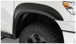 Compare Maximum number of 4 items selected Representative Image Bushwacker Extend-A-Fender Black Fender Flare Set - 40900-01 Part #: 40900-01 Line: BSW Bushwacker Extend-A-Fender Black Fender Flare Set Limited Lifetime Warranty Color: Black Finish: Matte Material: Plastic Style: Extended Hardware Included: Yes Paintable: Yes Drilling Required: Yes Number Of Pieces: 4 Flare Height (in): 1-3/4 Inch Tire Coverage (in): 2 Inch Lighting Included: No Show More Show Less