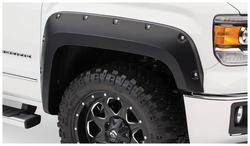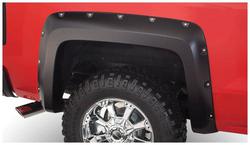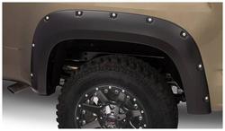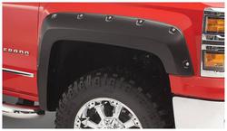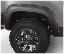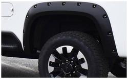 Compare Maximum number of 4 items selected Bushwacker Pocket Style Black Fender Flare Set - 40142-02 Part #: 40142-02 Line: BSW Bushwacker Pocket Style Black Fender Flare Set Limited Lifetime Warranty Color: Black Finish: Matte Material: Plastic Style: Pocket Hardware Included: Yes Paintable: Yes Drilling Required: No Number Of Pieces: 2 Flare Height (in): 6 Inch Tire Coverage (in): 1-1/2 Inch Lighting Included: No Show More Show Less