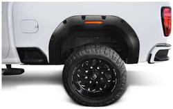 Compare Maximum number of 4 items selected Bushwacker Pocket Style Black Fender Flare Set - 40140-02 Part #: 40140-02 Line: BSW Bushwacker Pocket Style Black Fender Flare Set Limited Lifetime Warranty Color: Black Finish: Matte Material: Plastic Style: Pocket Hardware Included: Yes Paintable: Yes Drilling Required: No Number Of Pieces: 2 Flare Height (in): 5-1/2 Inch Tire Coverage (in): 1-1/2 Inch Lighting Included: No Show More Show Less
