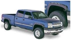 Compare Maximum number of 4 items selected Bushwacker Pocket Style Black Fender Flare Set - 40932-02 Part #: 40932-02 Line: BSW Bushwacker Pocket Style Black Fender Flare Set Limited Lifetime Warranty Color: Black Finish: Matte Material: Plastic Style: Pocket Hardware Included: Yes Paintable: Yes Drilling Required: No Number Of Pieces: 4 Flare Height (in): 7-1/2 Inch Tire Coverage (in): 2-1/4 Inch Lighting Included: No Show More Show Less