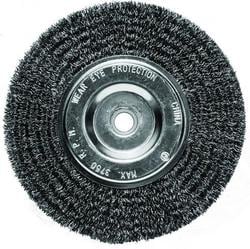 Compare Maximum number of 4 items selected Century Drill & Tool 6 Inch Wire Wheel Brush - 76861 Part #: 76861 Line: CDT Century Drill & Tool 6 Inch Wire Wheel Brush Limited Lifetime Warranty Diameter (in): 6 Inch Type: Bench Grinder, Crimped Overall Length (in): 6 Inch Shank Size (in): 1/2, 5/8 Inch Bristle Material: Steel Number Of Brushes: 1 Speed (RPM): 3750 RPM Brush Size (in): 6 Inch Show More Show Less