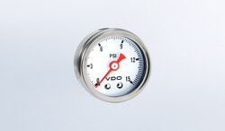 Compare Maximum number of 4 items selected Continental 1-1/2 Inch Fuel Pressure Gauge - 153-002 Part #: 153-002 Line: VDO Continental 1-1/2 Inch Fuel Pressure Gauge 2 Year LIMITED WARRANTY Quantity: 1 Thread Size: 1/8-27 Inch Illuminated: No Gauge Size (in): 1-1/2 Inch Pressure Range (psi): 0 To 15 psi Bezel Color: Chrome Face Color: White Digital Or Analog: Analog Gauge Type: Pressure Number Color: Black Pointer Color: Red OEM Replacement: No Liquid Filled: No Electrical Or Mechanical: Mechanical Font Color: Black Show More Show Less
