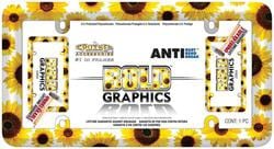 Compare Maximum number of 4 items selected Cruiser Accessories Sunflower License Plate Frame - 23804 Part #: 23804 Line: CSS Cruiser Accessories Sunflower License Plate Frame 1 Year Limited Warranty Material: Polycarbonate Theme: Sunflower Type: License Plate Frame Length (in): 6-3/4 Inch Length (mm): 172mm Width (in): 12-11/16 Inch Width (mm): 322mm Hardware Included: No Attachment Method: Bolt-On Cap Included: No Rust Resistant: Yes Locking Fasteners Included: No Show More Show Less