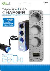 Compare Maximum number of 4 items selected Custom Accessories Goxt Lighted Triple 12V & USB Adapter - 23600 Part #: 23600 Line: CA Custom Accessories Goxt Lighted Triple 12V & USB Adapter 30 Day Limited Warranty Color: Silver Type: Adapter Voltage (V): 12 Volt