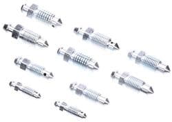 Compare Maximum number of 4 items selected Dorman HELP! Brake Bleeder Screw Assortment - 13949 Part #: 13949 Line: MTM Dorman HELP! Brake Bleeder Screw Assortment 1 Year Limited Warranty Material: Steel Thread Size: M10-1.0, M10-1.50, 1/4-28, 5/16-24, 2-3/4 Inch Length (in): 15/16, 1, 1-1/4 Inch Length (mm): 24mm, 30mm, 35mm Cap Included: No Head Diameter (in): 1/4, 5/16, 3/8 Inch Head Diameter (mm): 8mm, 10mm Check Valve Included: No Number Of Screws: 10 Show More Show Less
