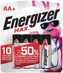 Compare Maximum number of 4 items selected Energizer MAX AA Alkaline Battery Pack of 4 - E91BP-4 Part #: E91BP-4 Line: EVR Energizer MAX AA Alkaline Battery Pack of 4 1 Year Limited Warranty Battery Type: Alkaline Quantity: 4 Type: Household Voltage (V): 1.5 Volt Battery Size: AA Show More Show Less
