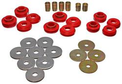 Compare Maximum number of 4 items selected Energy Suspension Body Mount Kit - 3.4129R Part #: 3.4129R Line: ENS Energy Suspension Body Mount Kit 7 Year Limited Warranty Color: Red Material: Polyurethane Hardware Included: Yes Bushings Included: Yes Bushing Material: Polyurethane Bolt Included: No Show More Show Less