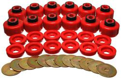 Compare Maximum number of 4 items selected Energy Suspension Body Mount Kit - 3.4156R Part #: 3.4156R Line: ENS Energy Suspension Body Mount Kit 7 Year Limited Warranty Color: Red Material: Polyurethane Hardware Included: Yes Bushings Included: Yes Bushing Material: Polyurethane Bolt Included: No Show More Show Less