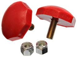 Compare Maximum number of 4 items selected Energy Suspension Bump Stop Set - 9.9165R Part #: 9.9165R Line: ENS Energy Suspension Bump Stop Set 7 Year Limited Warranty Color: Red Finish: Zinc-Plated Material: Polyurethane Quantity: 2 Height (in): 3 Inch Width (in): 2-3/8 Inch Hardware Included: No Body Design: Pull-Thru Show More Show Less