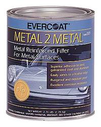 Compare Maximum number of 4 items selected Representative Image Evercoat Metal-2-Metal 1 Quart Reinforced Body Filler - 889 Part #: 889 Line: EVC Evercoat Metal-2-Metal 1 Quart Reinforced Body Filler 30 Day Limited Warranty Color: Gray Type: Metal Filler Volume: 1 Quart Waterproof: No Substrate Material: Aluminum, Galvanized Steel, Steel Container Size: 1 Quart Hardener Included: Yes VOC Content: 0.47 Lbs./Gallon Stain Free: No Sandable Cure Time: 5 Minute Show More Show Less