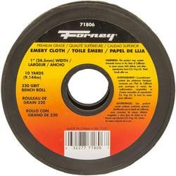 Compare Maximum number of 4 items selected Forney Industries 1 Inch X 10 Yard 320 Grit Emery Cloth Bench Roll - 71806 Part #: 71806 Line: FOR Forney Industries 1 Inch X 10 Yard 320 Grit Emery Cloth Bench Roll 90 Day Limited Warranty Color: Red Dimensions: 1 Inch X 10 Yard Grit: 320 Grit Type: Emery Cloth Bench Roll Mineral Type: Aluminum Oxide Sanding Method: Hand Show More Show Less
