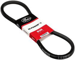Compare Maximum number of 4 items selected Gates Hi-Power II V-Belt 11/16 Inch x 39 Inch - B36 Part #: B36 Line: GAT Gates Hi-Power II V-Belt 11/16 Inch x 39 Inch 1 Year Limited Warranty Angle (Deg): 37 Degree Material: EPDM Rubber Notched: No Number Of Strands: 1 Section: B Top Width (in): 11/16 Inch Top Width (mm): 17mm Belt Type: V-Belt Outside Length (in): 39 Inch Outside Length (mm): 991mm Belt Back Material: Polyester Show More Show Less