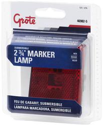 Compare Maximum number of 4 items selected Grote Clearance Marker Light - 46982-5 Part #: 46982-5 Line: GRO Grote Clearance Marker Light 1 Year Limited Warranty Shape: Square Hardware Included: Yes Bracket Included: No Number Of Bulbs: 1 Dimensions (in): 15/16 X 2-3/4 X 2-1/8 Inch Voltage (V): 12 Volt Housing Material: Polypropylene Housing Color: Black Lens Color: Red Amperage (A): 0.27 Amp Bulb Type: Incandescent Lens Material: Acrylic Mounting Pad Included: No Built-In Reflector: Yes Show More Show Less
