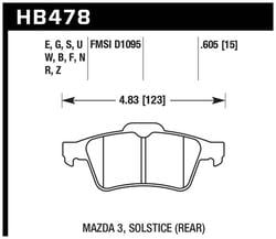 Compare Maximum number of 4 items selected Hawk Performance Rear Brake Pads - HB478F.605 Part #: HB478F.605 Line: HWK Hawk Performance Rear Brake Pads 90 Day Limited Warranty Integrally Molded: Yes