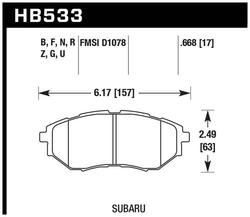 Compare Maximum number of 4 items selected Hawk Performance Front Brake Pads - HB533F.668 Part #: HB533F.668 Line: HWK Hawk Performance Front Brake Pads 90 Day Limited Warranty Integrally Molded: Yes