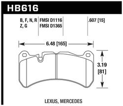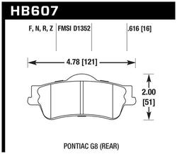 Compare Maximum number of 4 items selected Hawk Performance Rear Brake Pads - HB607F.616 Part #: HB607F.616 Line: HWK Hawk Performance Rear Brake Pads 90 Day Limited Warranty Integrally Molded: Yes