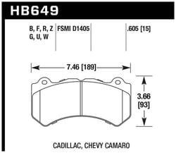 Compare Maximum number of 4 items selected Hawk Performance Front Brake Pads - HB649Z.605 Part #: HB649Z.605 Line: HWK Hawk Performance Front Brake Pads 90 Day Limited Warranty Integrally Molded: Yes
