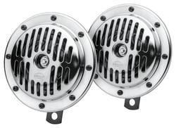 Compare Maximum number of 4 items selected Hella 114 dB Horn Set - 004811091 Part #: 004811091 Line: HLA Hella 114 dB Horn Set 1 Year Limited Warranty Color: Black, Chrome Diameter (in): 5-1/8 Inch Hardware Included: Yes Terminal Type: Blade Bracket Included: Yes Attachment Method: Bolt-On Voltage (V): 12, 24 Volt Frequency (Hz): 380 Hz Number Of Terminals: 2 Amperage (A): 5 Amp Sound Type: High, Low Number Of Connectors: 1 Decibel Rating (dB): 114 dB Show More Show Less