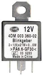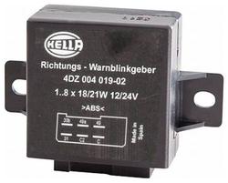 Compare Maximum number of 4 items selected Hella Hazard Warning Flasher - 003787081 Part #: 003787081 Line: HLA Hella Hazard Warning Flasher 1 Year Limited Warranty Terminal Type: Blade Bracket Included: No Connector Gender: Male Attachment Method: Plug-In Voltage (V): 12 Volt Number Of Terminals: 4 Show More Show Less